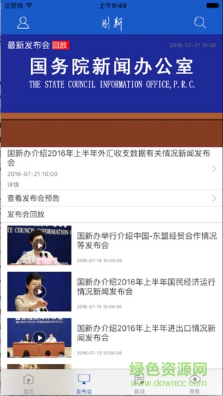 1、“国新发布”是在传统媒体与新媒体融合发展的时代环境下,由国务院新闻办公室推出的一款新媒体客户端。集中展示了国务院新闻办在新闻发布、时政新闻、政策解读、深入报道等领域的优势资源与传播导向。