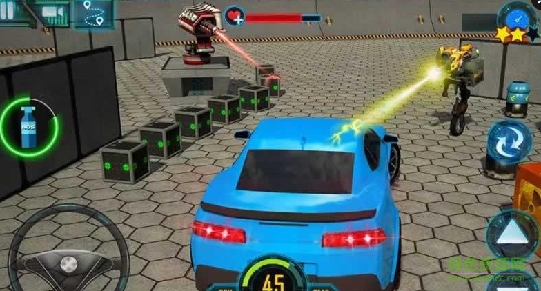 1、在游戏中,玩家将控制你的汽车与机器人展开对决;