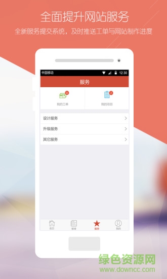 2.网站服务:提供设计、升级等服务,即时推送工单及网站制作进度,并能快速回复工单;