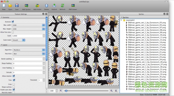 3.TexturePacker将帮助您使用GUI和命令行创建简单的表达2048x2048像素。挤压重复外周围的像素形状以避免闪烁时平铺纹理。自动微调,自动调整大小,极端的快速自动布局。