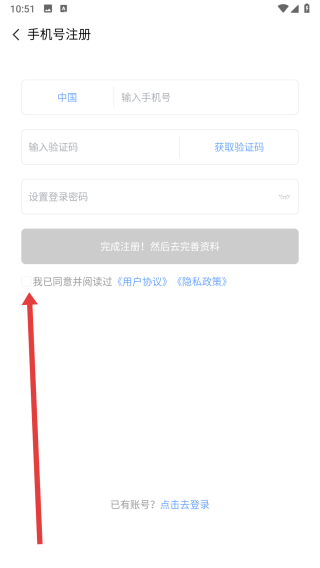 2、在进入到注册页面中时,需先点击方框勾选我已同意并阅读过按钮。