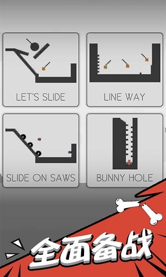 解压的粉碎火柴人游戏,粉粹程度越高,得分越高。游戏中玩家可以设置起跳姿势,让火柴人一跃而下粉身碎骨。当然也可以选择各种道具,配合不同的关卡设计,达成最优搭配,对火柴人造成成吨伤害。