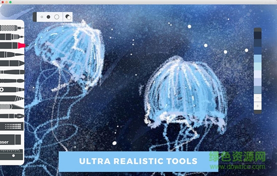 2.包含了超过20种的超真实的绘画工具。包括接近现实颜色的水彩画笔。