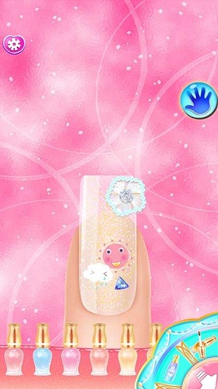 公主美甲乐园安卓最新版中玩家可以模拟美甲的全过程,开始需要给手部做护理,有众多不同颜色的指甲油可以选择,可以自由选择喜爱的图案花纹,还可以加上小水晶和小钻石,喜爱的朋友赶快下载试玩吧!