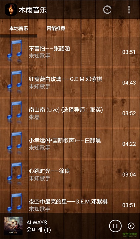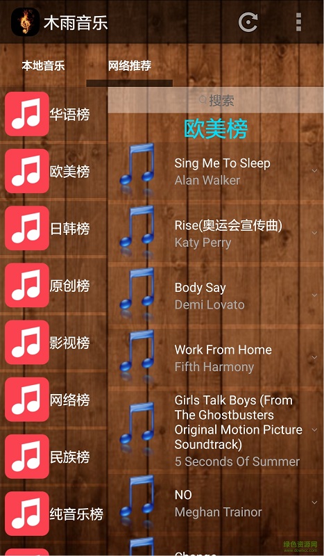 木雨音乐app是一款小清新的音乐播放器,各种功能齐全,搜歌方便,界面简约而不失格调,满满的文艺范!喜欢的小伙伴在绿色资源网下载试试吧!