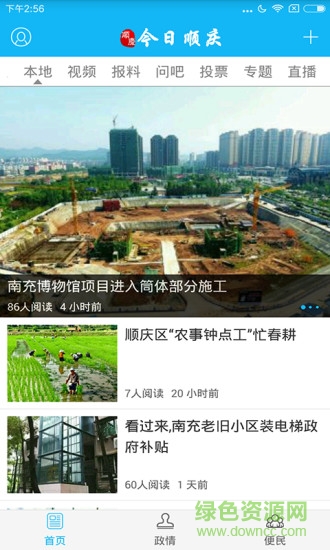 今日顺庆是一款非常专业的南充顺庆本地新闻资讯阅读平台,通过这款应用,用户能够轻松获取各类政府政策和社会信息,享受高效的在线服务。本市热点新闻实时发布,新闻阅读手机观看评论交流轻松掌握本市热点。能够让所有人通过软件了解最新资讯让自己的生活更加便利,感兴趣的快来下载体验吧!