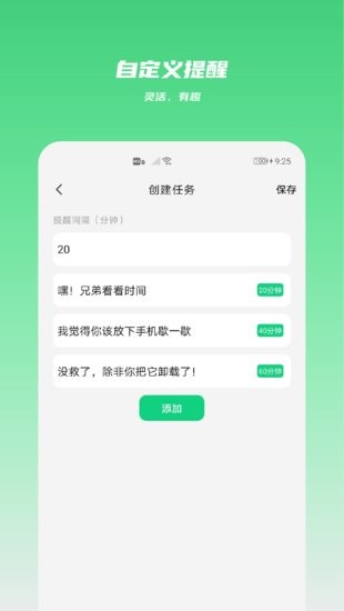 这是一款免费的应用使用时长提醒工具,支持正计时、倒计时、按次计时三种计时方式统计应用时长,它可以帮助你感知某一款应用的沉浸式使用时长,并在预设时间向你提醒预录入的文案,帮助你减少沉浸式玩机时间,避免不必要的时间浪费。
