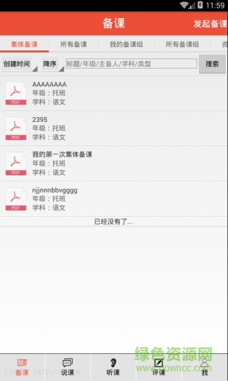 4、评课模块:用户可以创建评课组,对自己或者他人发布的备课,说课和听课进行评价和评分;