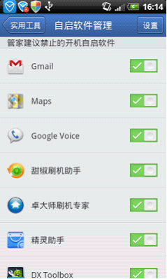 基本上,现在的软件都会在后台设置成开机联网状态,但是有了ROOT权限,我们就可以对他们进行控制了。以腾讯手机管家为例,手机上安装腾讯手机管家,然后启动软件,当他询问你是否进行ROOT授权时,请选择“允许”。然后进入软件的工具箱,点击“自启管理”,即可看到后台软件自启的情况,根据自己需要调整即可。