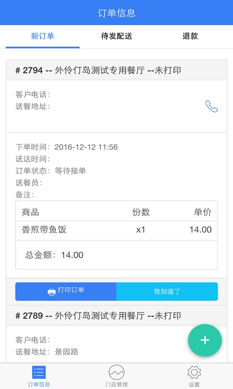 方便于加盟餐厅查询餐厅订单,连接打印机打印订单。