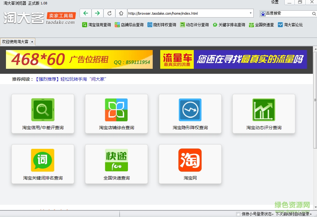 淘大客信誉查询工具是一款专门针对于淘宝卖家信誉查询的工具,现在做淘宝的用户非常多,为了让您更加了解其他商家的卖货习惯和套路,来绿色资源网下载就可以使用淘大客信誉查询工具来帮您进行有效的分析。