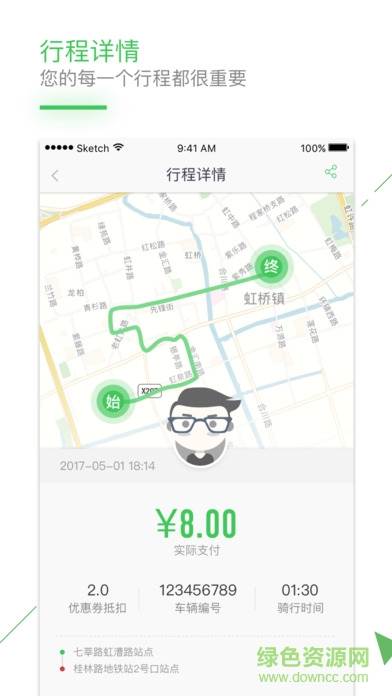 手机号验证即可登录,押金实名注册流程简洁,借车、还车路线快速引导,APP一键操作