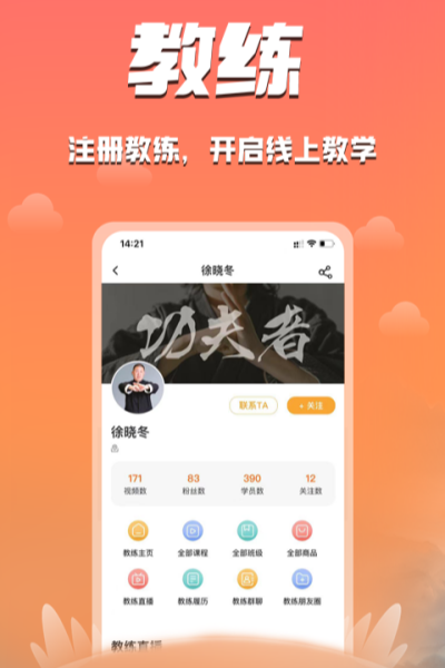 功夫者,是功夫、体育教学整合与分享的平台。功夫者一直以“上武得道,平天下;中武入喆,安身心;下武精技,防侵害”作为自己的教学宗旨。在这里,你能找到任何你想学习的国内外功夫教学以及体育运动相关教学,并能直接与教练进行私信、群聊、直播互动。在这里,你能和其他功夫、体育爱好者一起交流努力,然后一同分享自己训练的汗水与成功。悠悠千年,传承国粹,功夫练体,武者修心,功夫者期待你的加入,与你共修功夫之心。