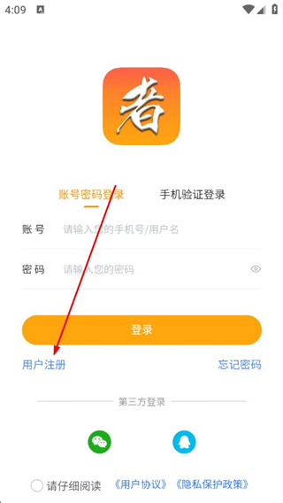 3、在登录页面,点击用户注册。