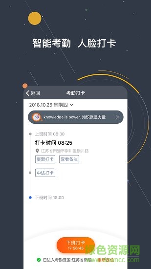 4.一个app全局掌控考勤,实时查看个人及团队考勤情况。