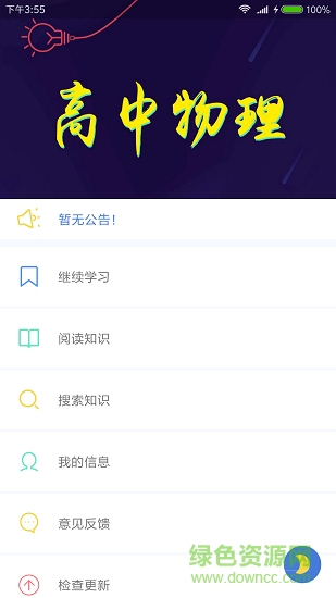 高中物理大全是专为高中学生提供的一款物理学习app,有些物理知识在课堂上没有及时消化,导致学习进度跟不上,作业完成难度高,高中物理大全,包含了高中物理的所有知识,哪里不会就学哪里,感兴趣的朋友就来绿色资源网下载安装吧