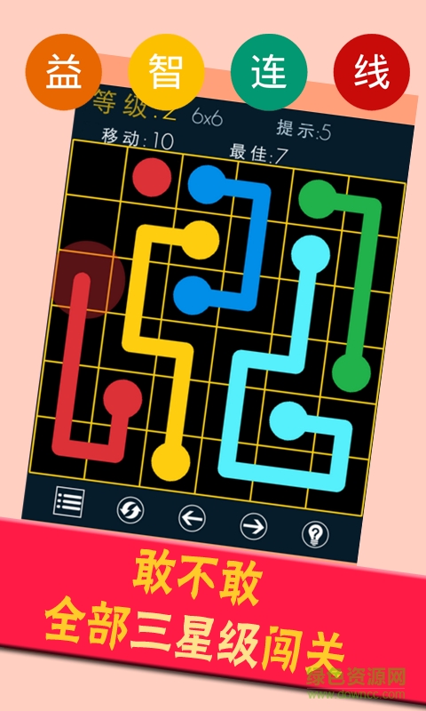 1.前10关主要难点在于玩家要学会绕路的思维,游戏中一般两点不可能用最短的连线方式相连,通常要考虑绕远路为其他的线让出空间。习惯了绕路的思维,这个游戏就会简单许多。