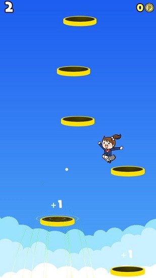 跳上天空女孩玩法是经典的弹跳吃金币,你需要操作一个jk女孩不停在蹦床弹跳,跳到更高的位置,同时还要注意吃金币哦!游戏中如果踩空了的话就完蛋了,因此需要格外小心!如果你对这款游戏感兴趣的话,欢迎来下载!