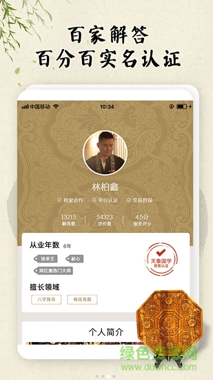 天象是一款非常好用的周易算命app,主要是给用户提供详细的算命服务,平台内有很多厉害的算命大师,帮助用户算出自己生辰八字,提供专一的算命服务,是用户特别喜欢的算命应用,感兴趣就来绿色资源网下载吧!