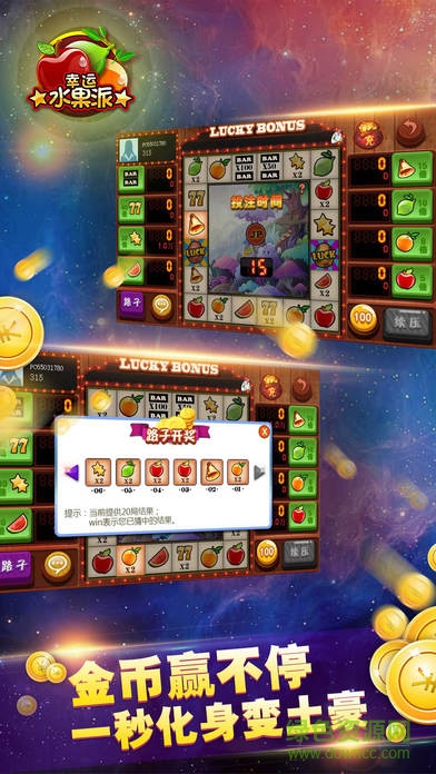 幸运水果派游戏ios版是一款为玩家打造的经典水果机游戏苹果版本,开火车,大三元,小三元,大四喜,大满贯等等大奖等你来拿!集水果机各种玩法为一体,喜欢就来绿色资源网下载体验吧!