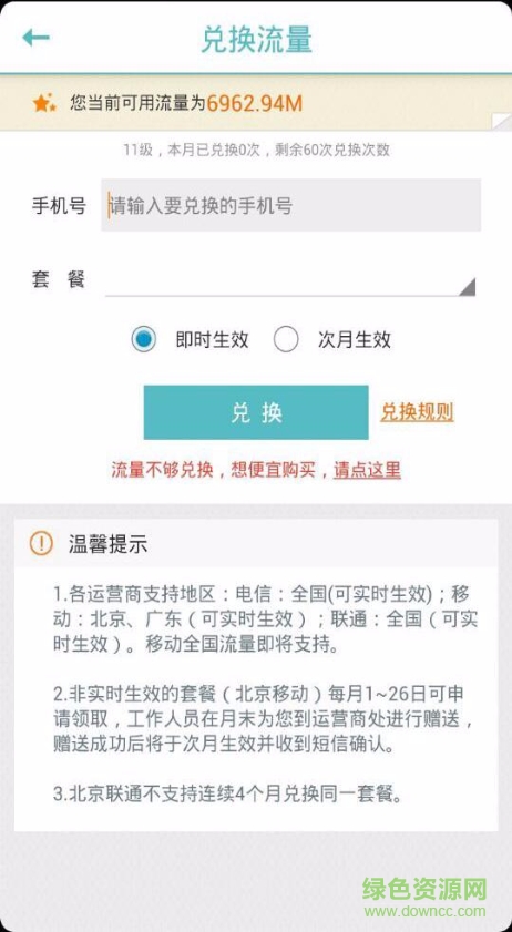 国内首款同时支持三大运营商流量兑换且开放流量购买功能的平台,通过完成任务即可获得免费流量,并能以低于运营商的更优惠价格购买到所需流量。