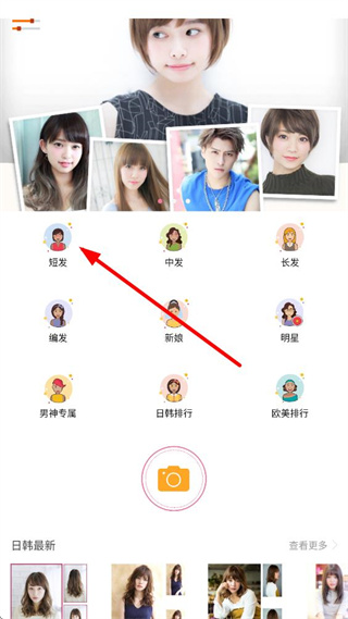 2、在短发发型展示页面,选择喜欢的发型,进入拍照提示页面。