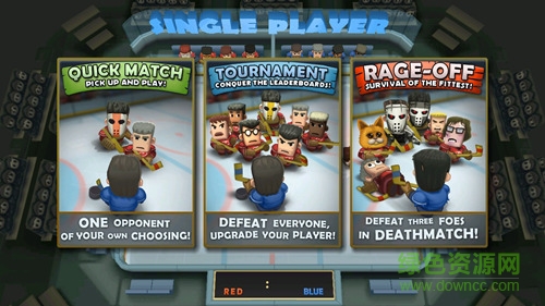 玩家可选择锦标赛、快速匹配和死斗这三种不同的单人游戏模式,以及双人同屏对战模式。热血冰球操作简单,左边虚拟摇杆控制运动方向,右边挥杆(攻击)。长按挥杆,可以控制攻击的力度和方向,松开后完成挥杆了。在操控上,感觉还是很流畅和舒服的。