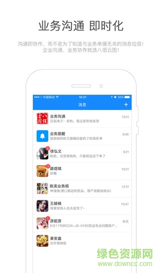 1.业务沟通:基于业务订单,发起即时沟通,项目群聊、业务提醒,真正企业级通讯工具!
