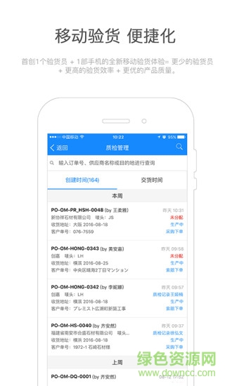 2.移动验货:首创1个验货员 + 1部手机的全新移动验货体验 = 更少的验货员 + 更高的验货效率 + 更优的产品质量!