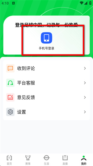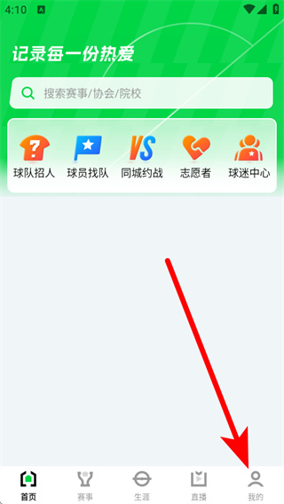 1、在绿茵中国APP首页,点击右下角我的选项,进入个人页面。