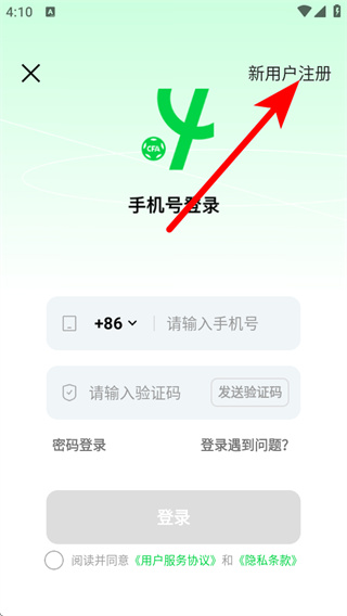 3、在登录页面,点击新用户注册选项,进入注册页面。