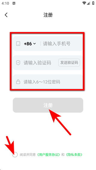 4、输入信息,勾选用户协议后,点击注册按钮,完成账号注册。