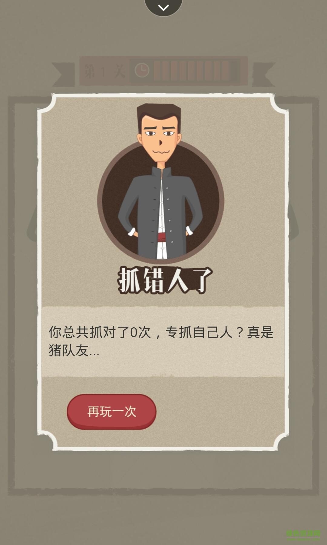 我们之中混入了一个内奸,快来帮我抓住他!辨别出内奸,把他揪出来!能不能抓住他,就看你的火眼金睛了!在限定的时间内找出内奸。不要抓错良民噢,一旦抓错人,游戏就此结束了,所以擦亮你的眼睛吧!