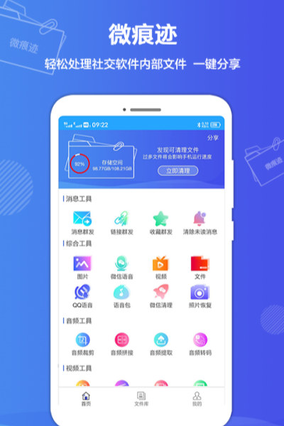 微痕迹app是实用的手机清理工具,占用内存极小,不会额外耗费手机存储空间,它能智能分类或按时间筛选导出手机垃圾,有效避免误删重要资源,同时具备强大的隐私保护功能,确保所有使用痕迹绝不外泄,除清理垃圾外,还支持数据备份还原、查看音乐视频简介,也能导出全部聊天文件,有兴趣的朋友不妨下载试试。