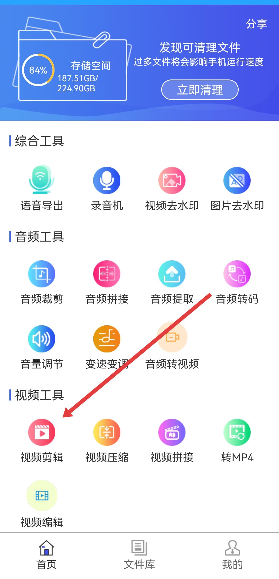 1、在微痕迹首页,点击视频剪辑选项,进入文件选择的界面。