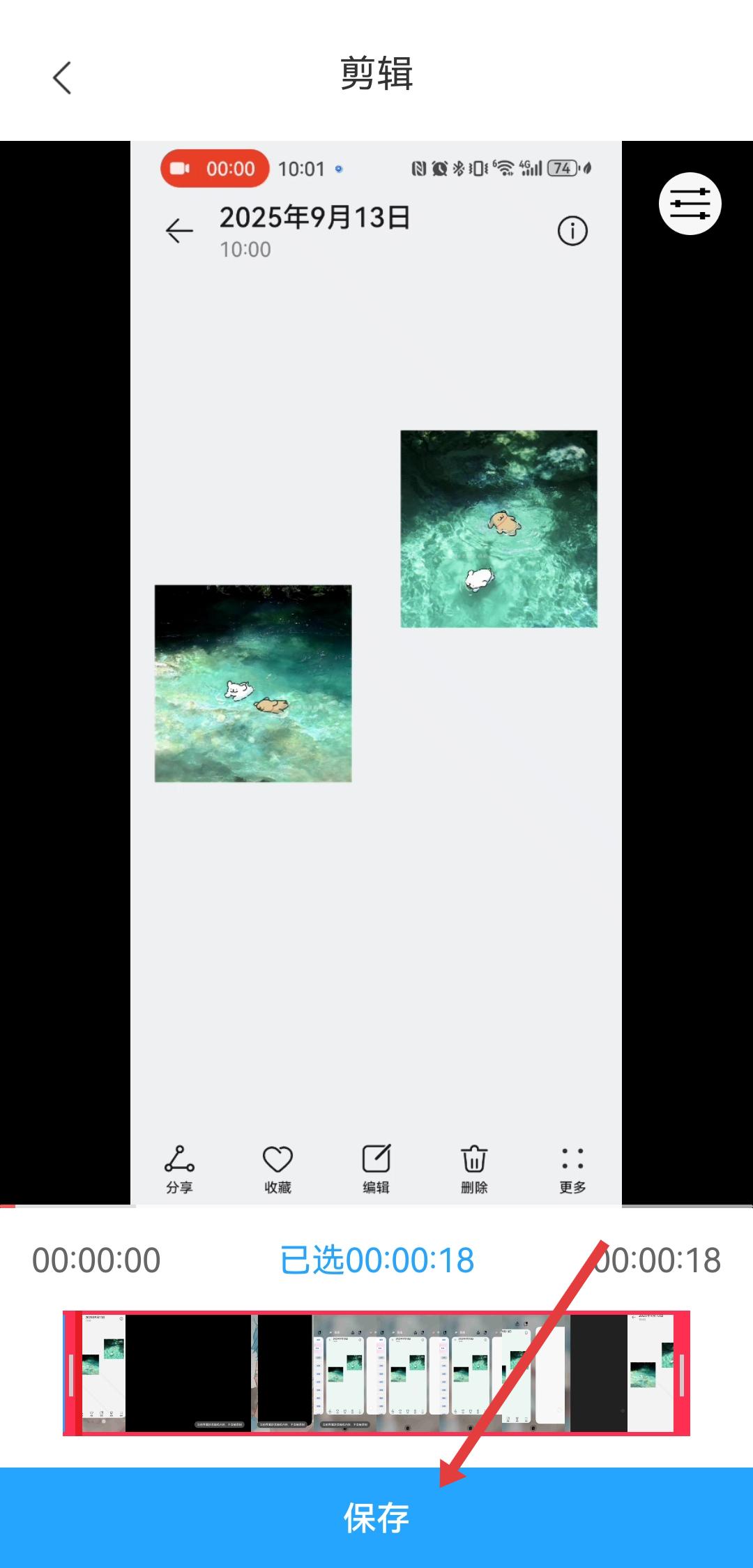 4、在剪辑界面,对视频进行裁剪等操作后,点击保存按钮,完成剪辑并保存。