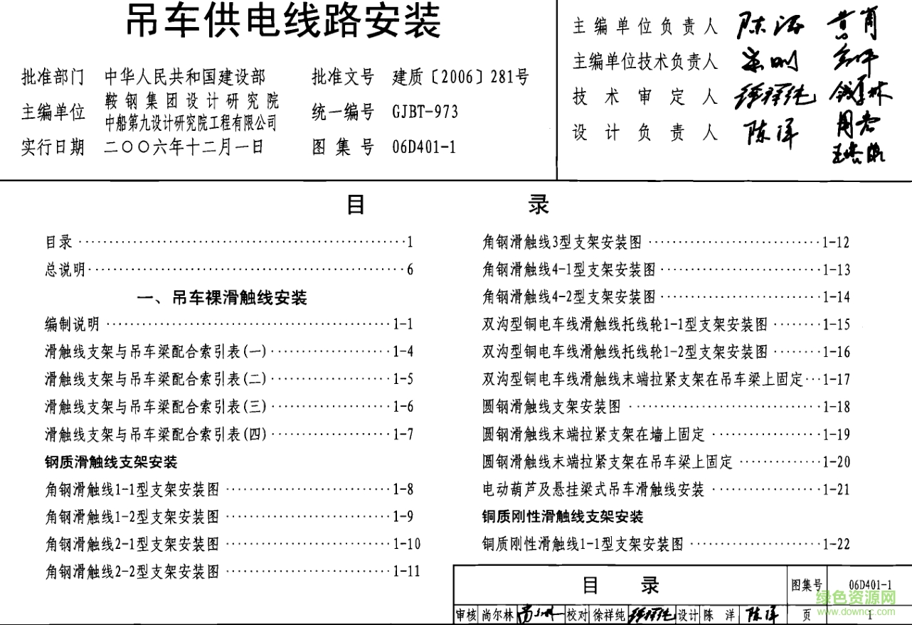 06d401 1图集是一款供电线路安装图集,主要为大家讲解的是吊车裸滑触线安装、吊车移动电缆安装、吊车安全滑触线安装三个方面的知识,欢迎有需要的朋友到绿色资源网下载使用!