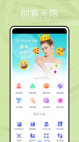 2、提供了许多的照片编辑板块,您就能够选择更多有趣的编辑功能。