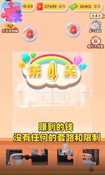 拼图大挑战红包版游戏有非常多的关卡,玩家完成游戏中的任务可以获得丰厚的红包奖励,操作很简单,上手非常容易任何玩家都可以来玩耍,游戏中的场景非常的多,快来下载