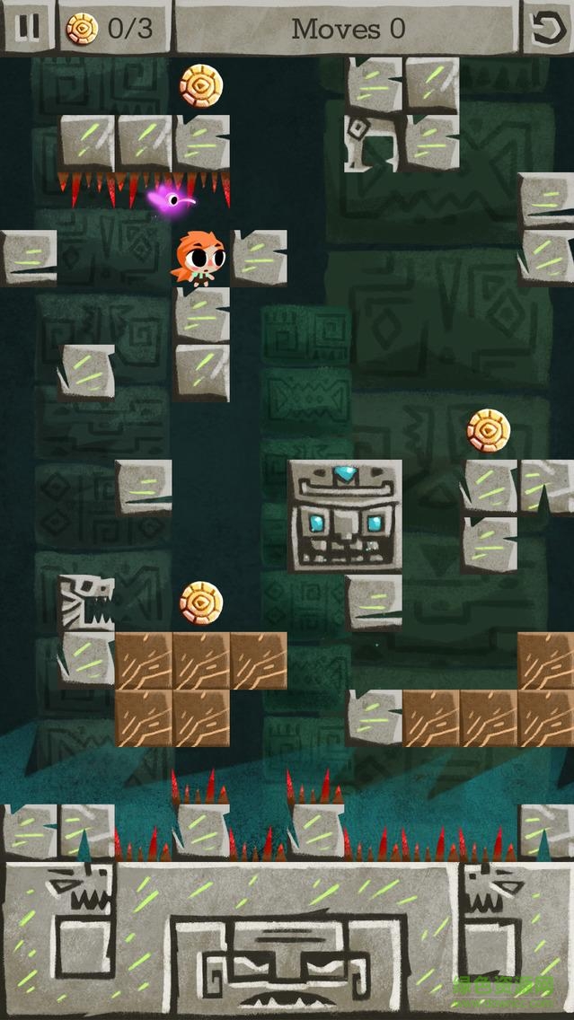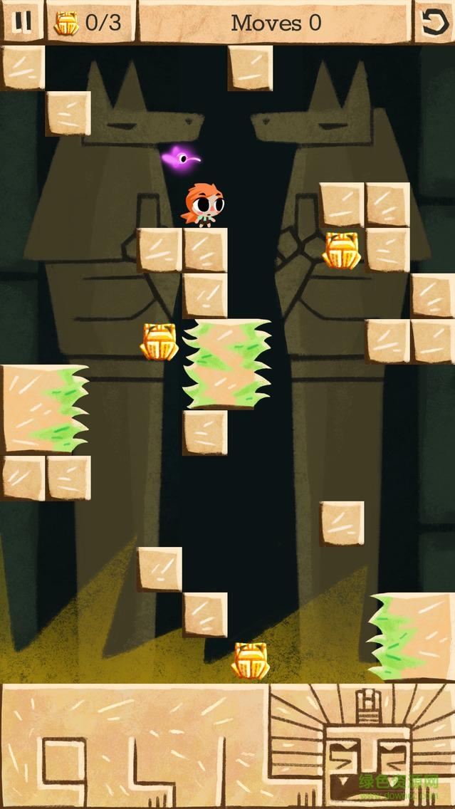 2.游戏中总共3大场景,72个关卡,每个关卡都有限定的移动次数,玩家必须在移动次数用完之前到达金色雕像所在的位置。