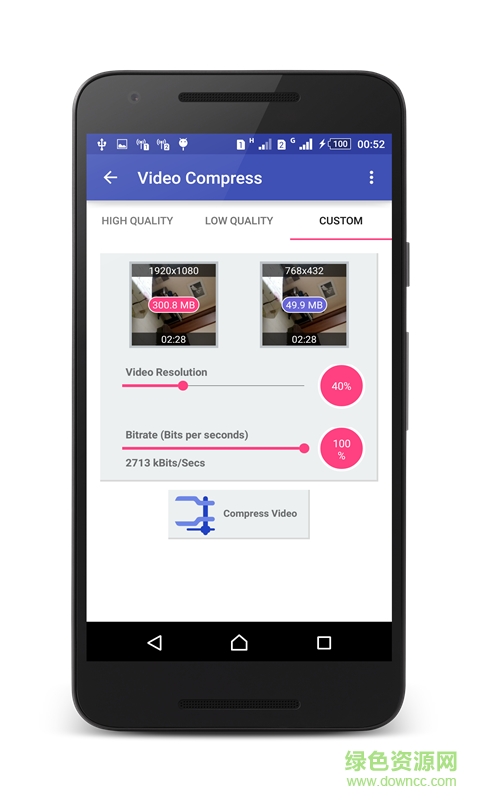 压缩视频app是一款为您节省储存空间,将视频压缩成小内存视频,为您有效节省内存的一款实用型软件,有需要的朋友欢迎来绿色资源下载!