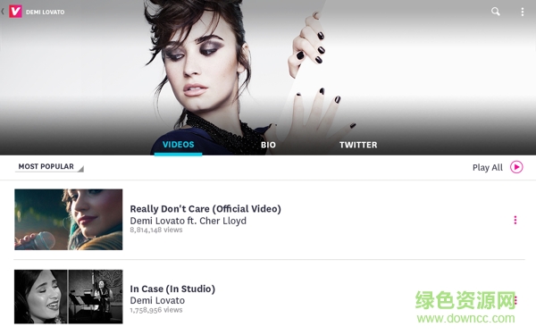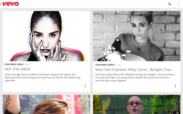 VEVO是全球最大的音乐服务平台,汇聚了海量优质的官方正版音乐,界面简洁,列表清晰,不论你喜欢哪类音乐,在这里都可以找得到。热爱音乐的朋友千万不要错过该款应用,来绿色资源网下载体验吧!