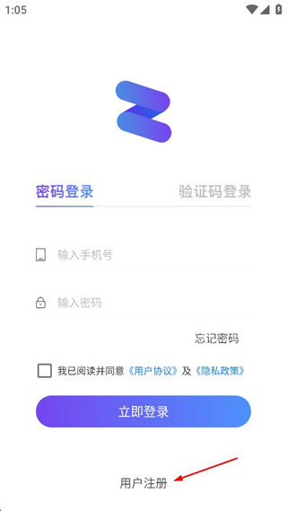 1、在登录页面点击用户注册选项,进入用户注册页面。