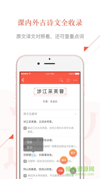 有道语文达人软件ipad版是一款专为ipad用户学生党打造的应用软件,课内外古诗文全收录,原文译文对照看,非常的实用,有需要的朋友赶紧来绿色资源网下载吧