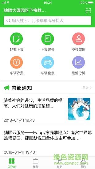 捷物管app为物业管理人员提供了便捷化的掌上办公服务。不仅可以发布社区停水停电、电梯维保公告信息,还可以催缴物业费、处理业务投诉问题等。需要的用户欢迎在绿色资源网下载。