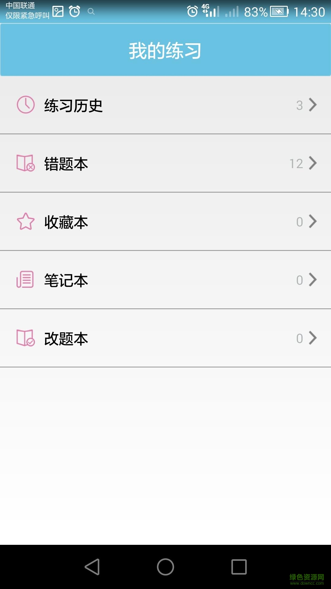 6、笔记本。用户可以为任何题目添加笔记。所有添加笔记的题目自动出现在笔记本中