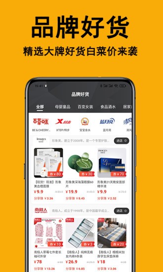 品牌好货。为你展示了众多类别的商品资源,你可以随时随地进行查看;