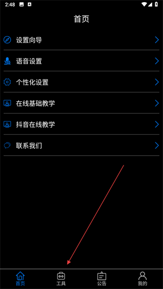 1、打开保益悦听APP,进入首页后点击底部的工具选项。