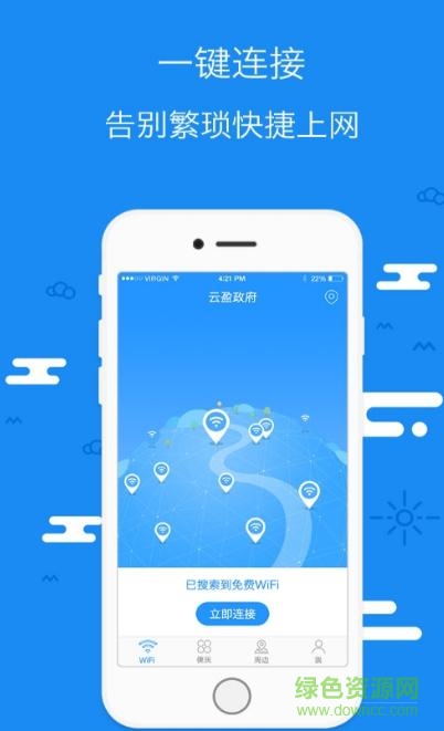 云盈wifi客户端是一款为用户提供随时随地便捷上网功能的手机随身wifi,使用云盈wifi客户端可以免除流量不够的烦恼,它能够查找身边wifi,并进行免费上网。快来绿色资源网下载吧!