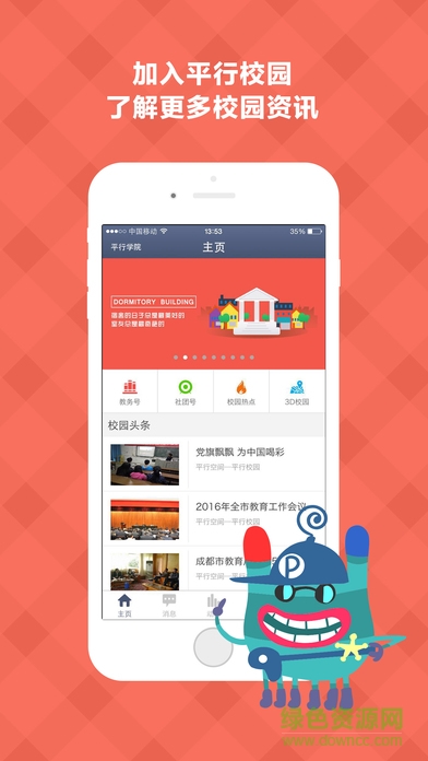 平行校园app是一款能够在学校内吃喝玩乐,完成一些校园事务的手机软件,通过平行校园客户端用户还能和校园内著名的大咖们一起玩耍,交友聊天,并会教给你更多的校园知识。快来绿色资源网下载吧!